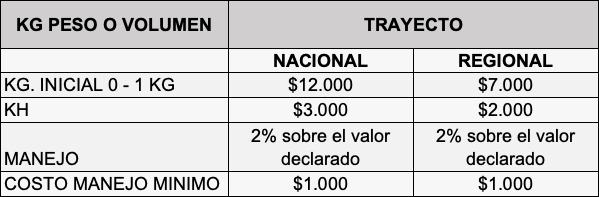 - Aplica para: Envíos con un peso o volumen hasta 5 kilos.